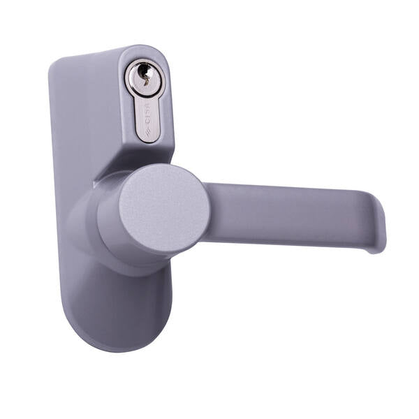 Maniglia esterna con cilindro CISA per maniglione antipanico.